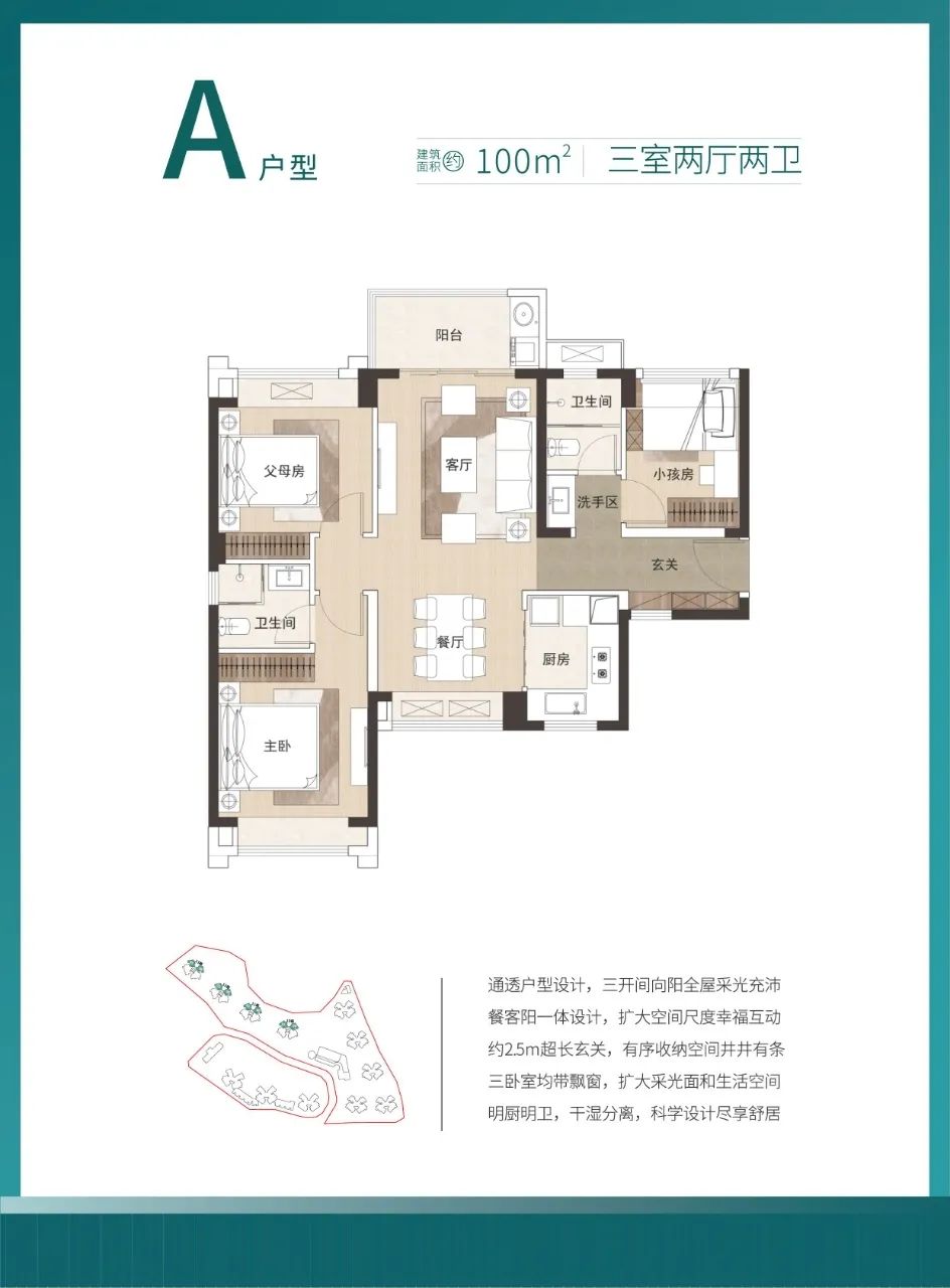 | A | 100平 | 三房两厅两卫 |