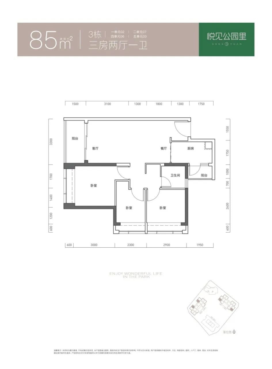 | 1 | 85平 | 三房两厅一卫 |