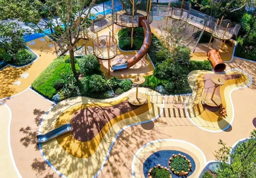 整座乐园以原色实木为主色调,接近自然的色彩,让乐园与周围园林融为一体,同时也弱化了人为的元素,让孩子仿佛置身大自然之中。 |