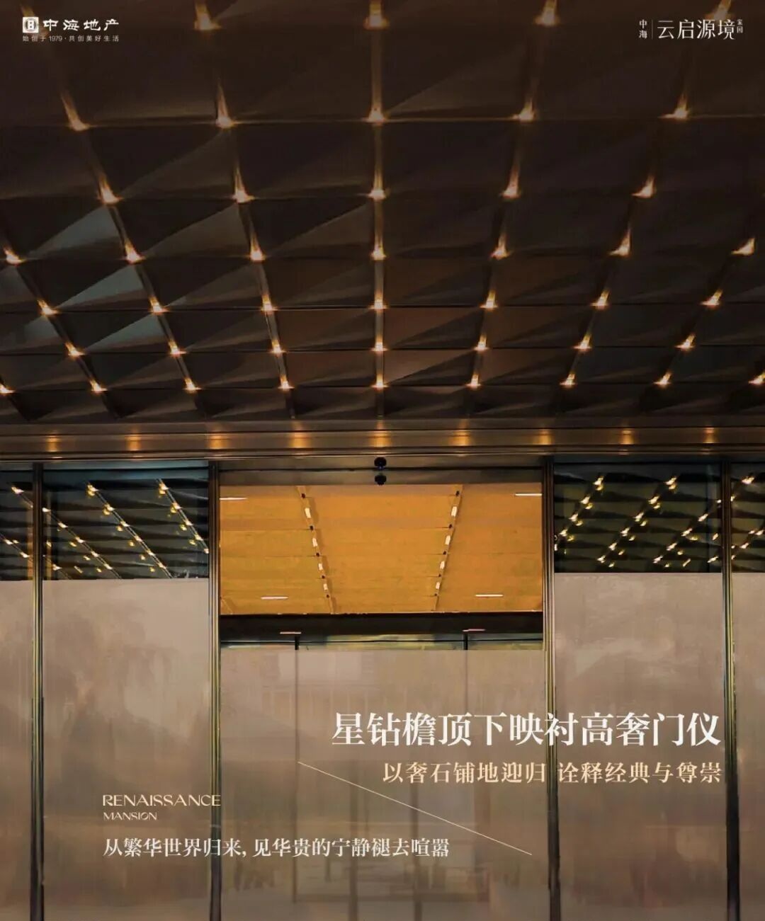 星钻檐顶下映衬高奢门仪,以奢石铺地迎归,诠释经典与尊崇。 |