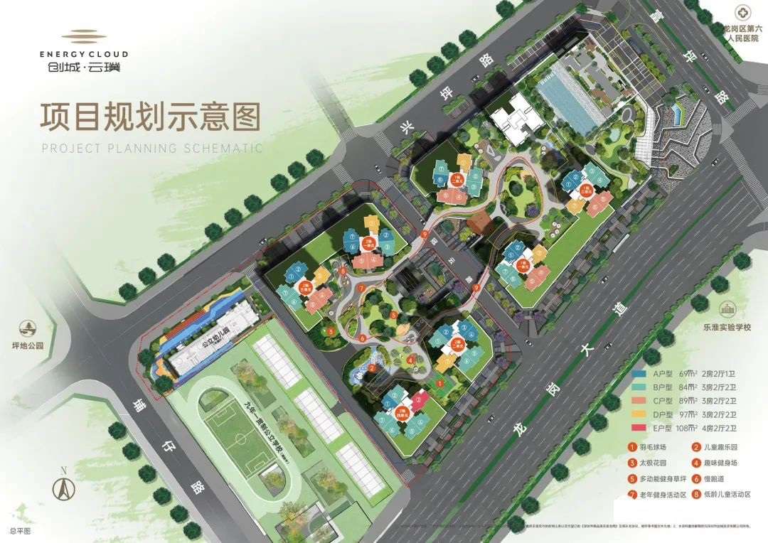 项目自带社康;1公里范围内,近邻龙岗区第六人民医院;5公里便捷直达三甲级龙岗中心医院,双医院为家人健康护航。