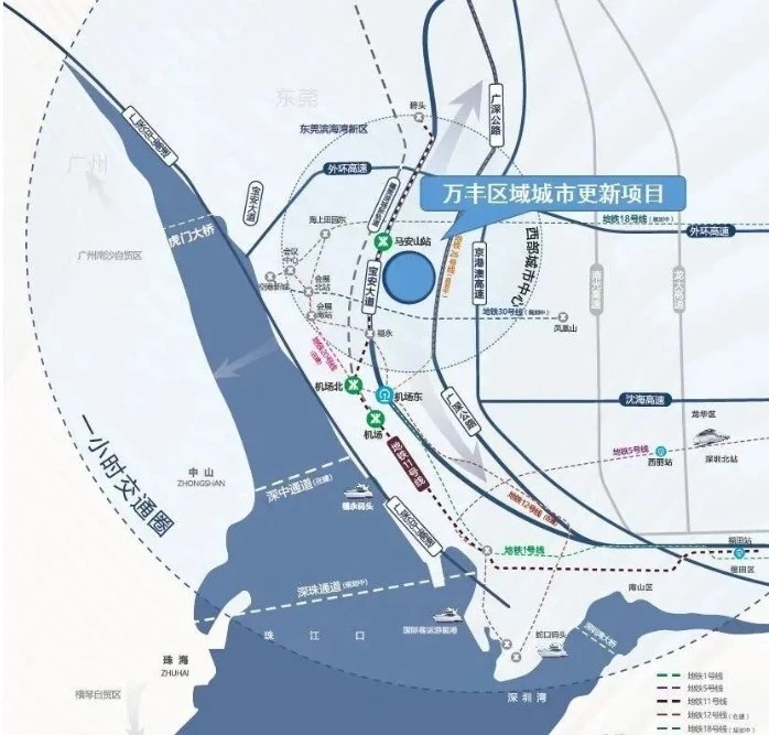 近地铁为11号线马安山站,直线距离约800米左右,沿途半小时左右可达碧海、机场,1小时左右抵达宝中,另外换乘1号线1小时左右可通勤南山科技园、福田中心、车公庙、后海等多个重点区域,辐射性极好。 陆路交通方面有凤塘大道、宝安大道、广深公路三条城市主大道,宝安大道、广深公路都是深圳西部连接市区的主要道路,自驾出行南山(36分钟)、福田(45分钟)、罗湖(50分钟)等市区较为便捷。 |