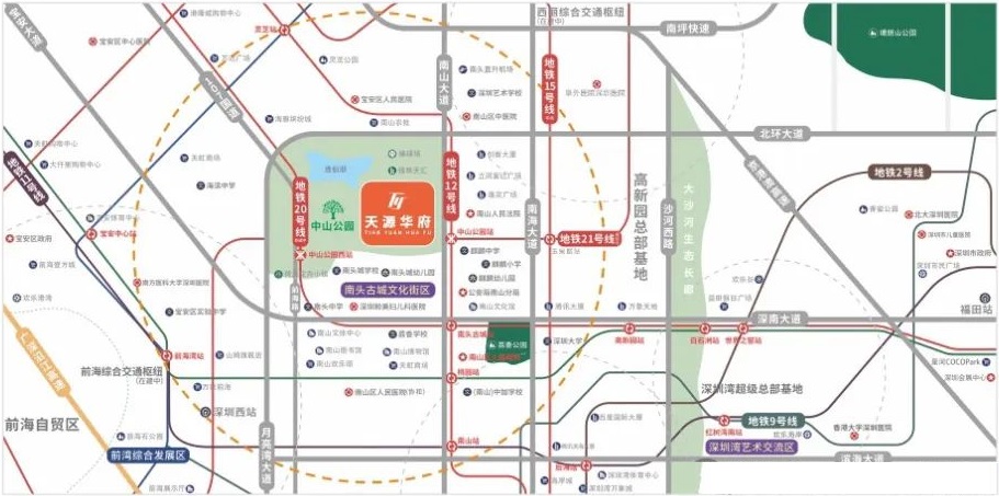 项目距离地铁12号线 “中山公园站”非常近,是真正的地铁口新盘,往南可以直达南山蛇口,往北去宝安中心、西乡、机场十分便捷。 自驾方面,项目东侧即是主干道南山大道,北面是北环大道,自驾去往前海、深圳湾、宝安都很方便。 |