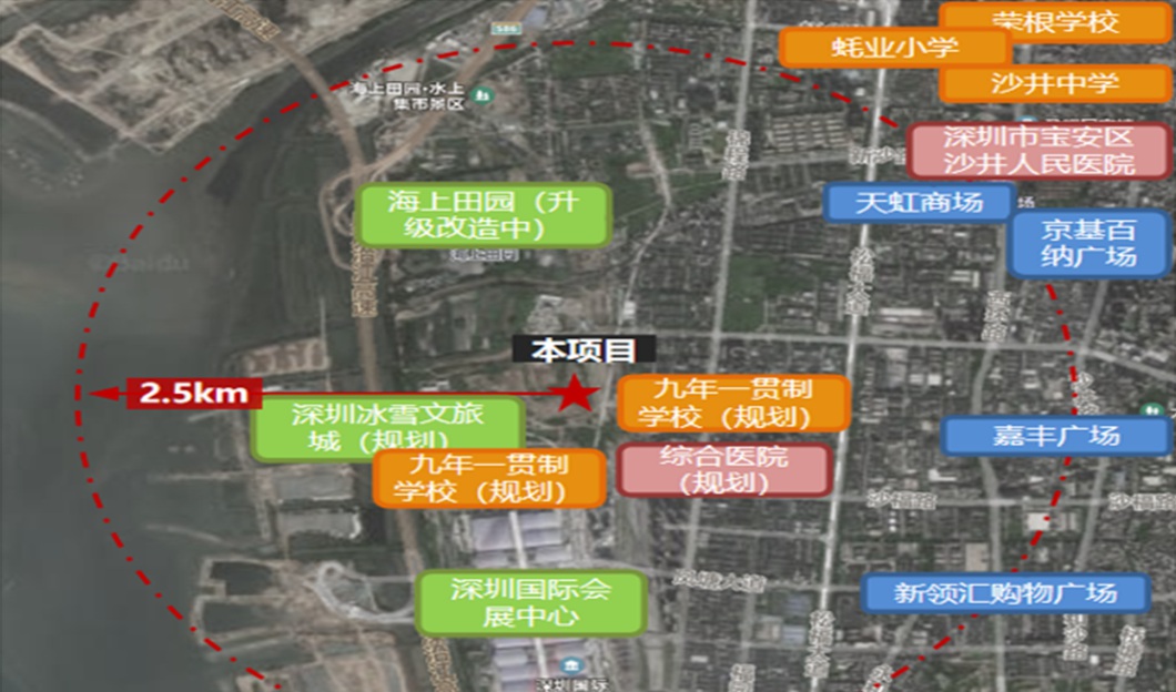 5公里内2家三甲医院—深圳市中西结合医院、沙井人民医院宝安区沙井坣岗医院,与深圳万丰医院。 |