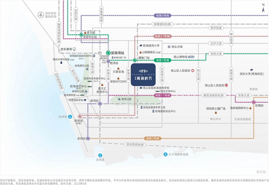 项目距离地铁站为1号线鲤鱼门站约720米,距离5号线、9号线前湾站约900米,1/5/11号三条地铁线交汇。 目前还有桂湾在建的【前海湾交通枢纽】(亚洲最大),地下4层,两条城际轨道线,香港深圳西部快轨(15分到达香港中环)、穗莞深城际轨道线,还设计了出入境口岸,未来接通深珠城际,据说可以直接刷深圳通。 |