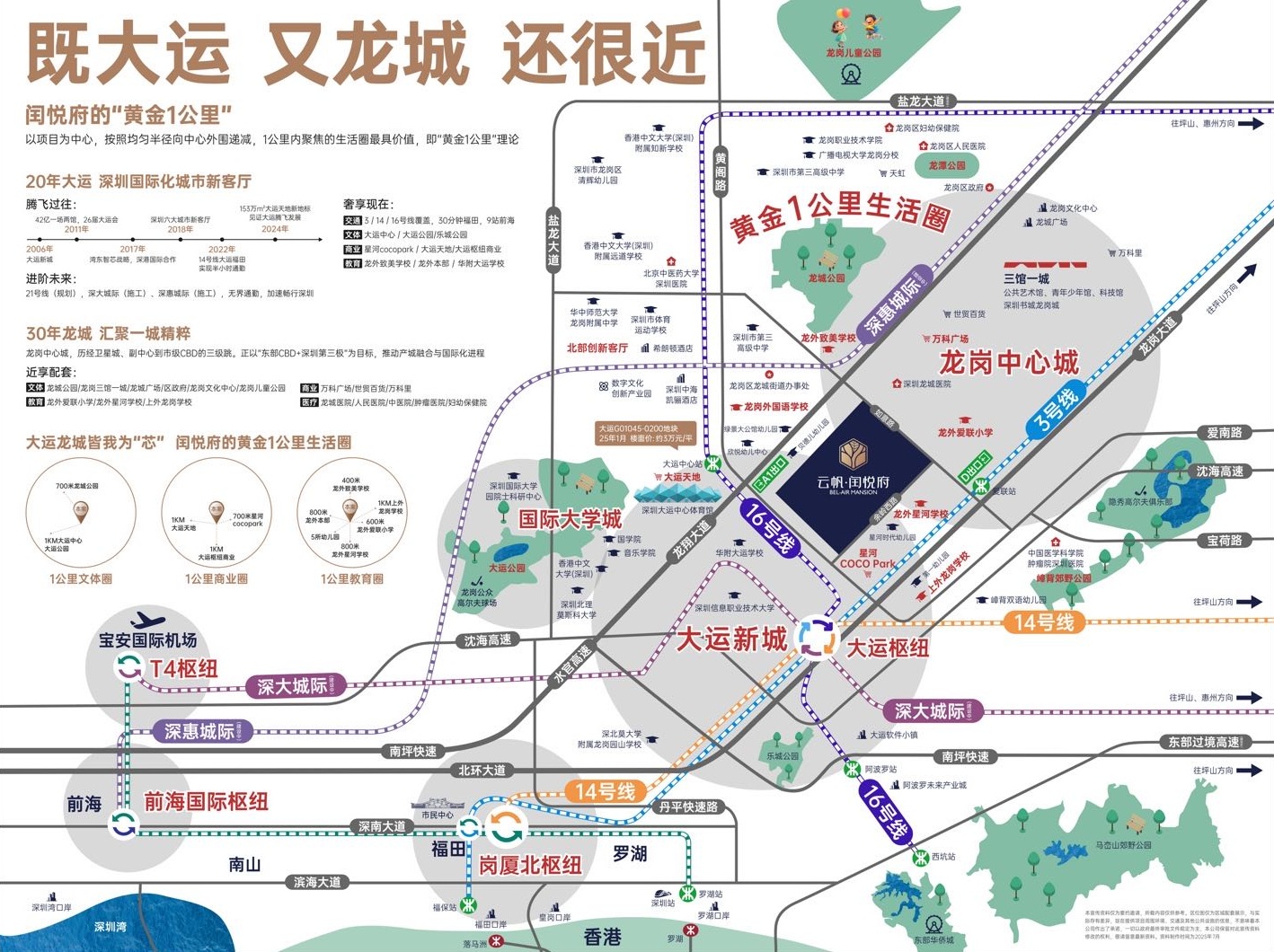 项目周边汇聚岁宝百货(盒马鲜生)、万科广场、万科里、华润万象大运天地、星河COCOPARK(山姆)等超70万㎡商业综合体,基本都在步行范围内。 |