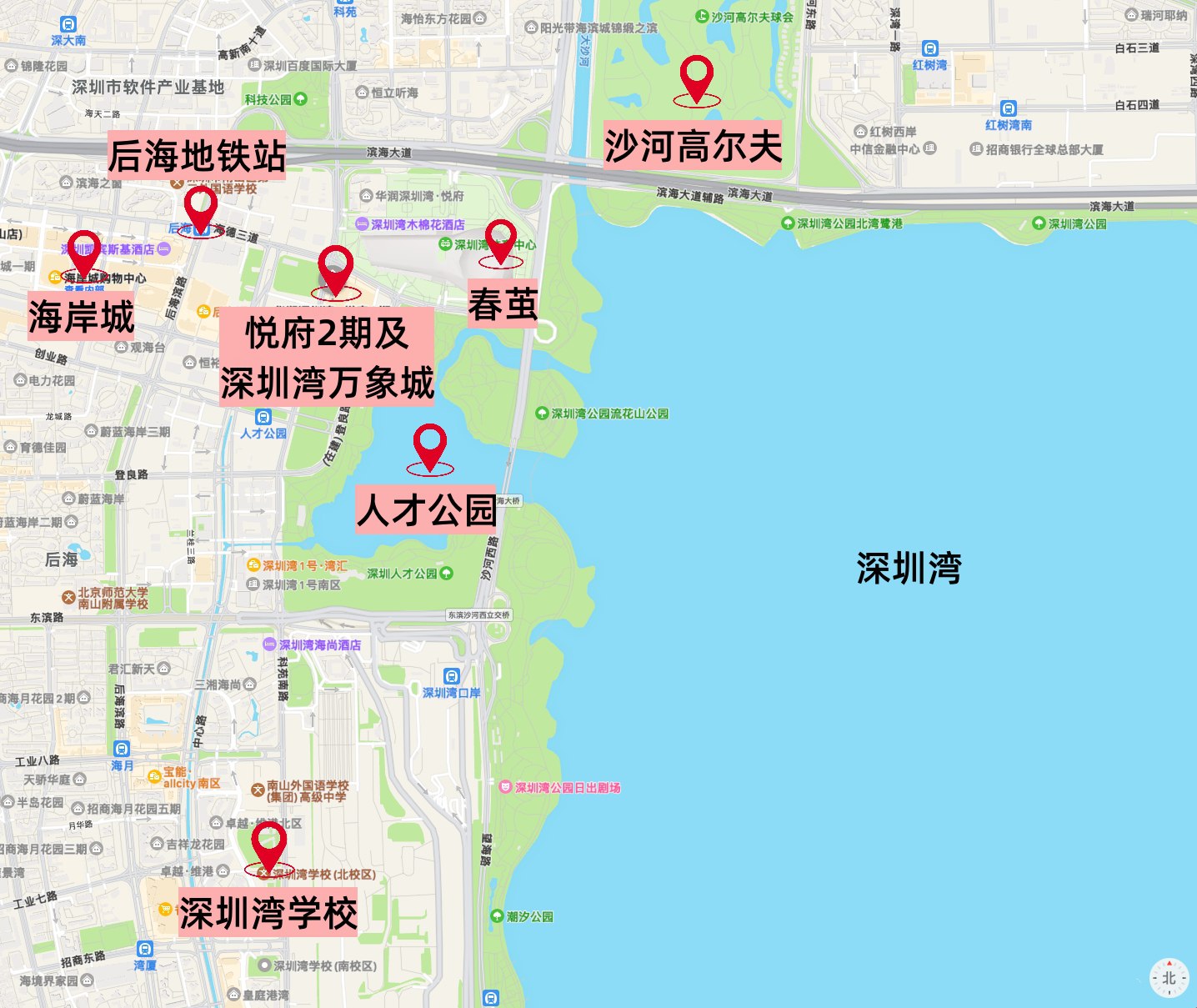 项目周边有北师大附小,南山外国语学府学校,南二外学府中心南油小学,深圳大学附属后海学校,北师范大学附中,深圳湾学校等。 |